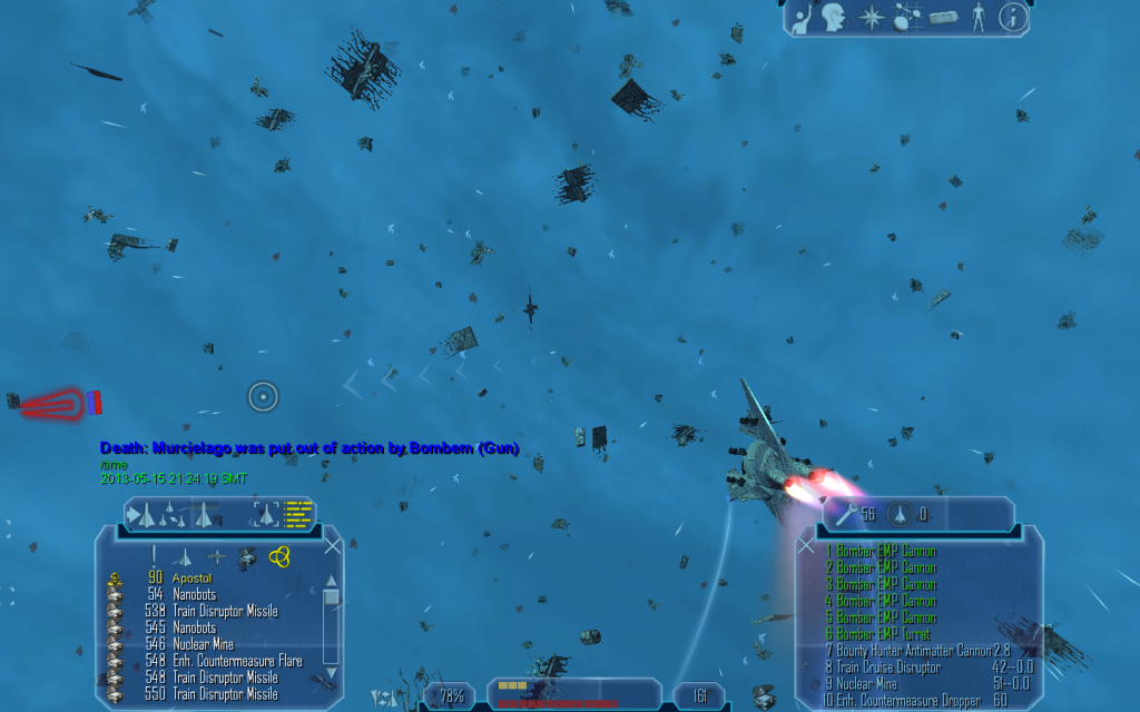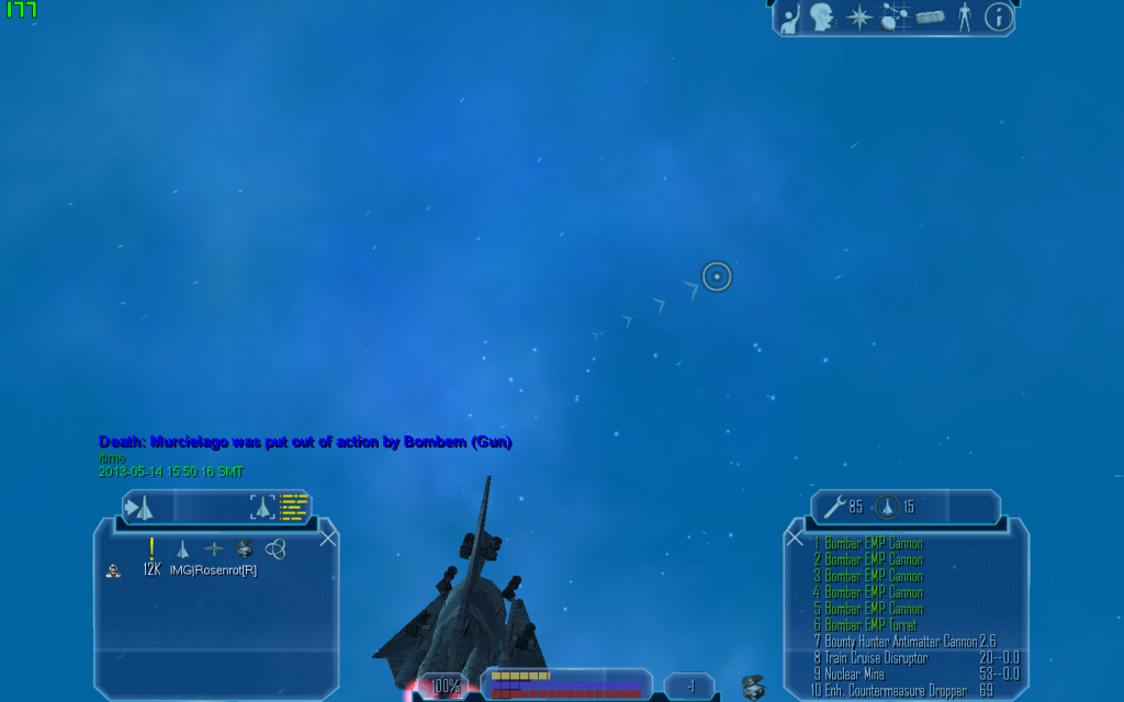 RE: Target: Murcielago, Corsair inhabitant of Sigma-13. - Tyler - 05-05-2013 ![]() "Guten Tag Herr Wilson, You're cleared for the hunt. The destruction you sent in earlier is, as said before, still invalid, although Ich am pleased to see that you possess the skills to take him on. Any boom you make from this on is considered as valid. Happy hunting." "Mit freundlichen Grüßen, Nelly Sachs, ALG Waste Disposal." ![]() RE: Target: Murcielago, Corsair inhabitant of Sigma-13. - Tyler - 05-07-2013 ![]() "Guten Tag Herr Forder, Ich wanted to let you know that the restrictions for ALG personnel has been lifted. You are now cleared to also hunt with ALG identified vessels. If you prefer to remain under other ID, that's fine too. Just make sure to ask him for a 'donation', as he so kindly puts it every time, consisting of the bounty price itself. I'll need proof of that saying when you encounter him." "Good luck." "Mit freundlichen Grüßen, Nelly Sachs, ALG Waste Disposal." ![]() RE: Target: Murcielago, Corsair inhabitant of Sigma-13. - Karst - 05-07-2013 ![]() Hello everyone, Lena here. I received a call from Nelly that our friend had been spotted in Sigma-13, so I got underway in the Wächter. She managed to intercept him in her light fighter and with her help, we eventually succeeded in destroying him. I must say though, my aim was quite embarrassing. I need more training and less coffee. Guncam shot The reward should go to the Thaya, not the shared Wächter. Good luck everyone else! ![]() RE: Target: Murcielago, Corsair inhabitant of Sigma-13. - belarusich - 05-14-2013 :::Incoming transmission:::
