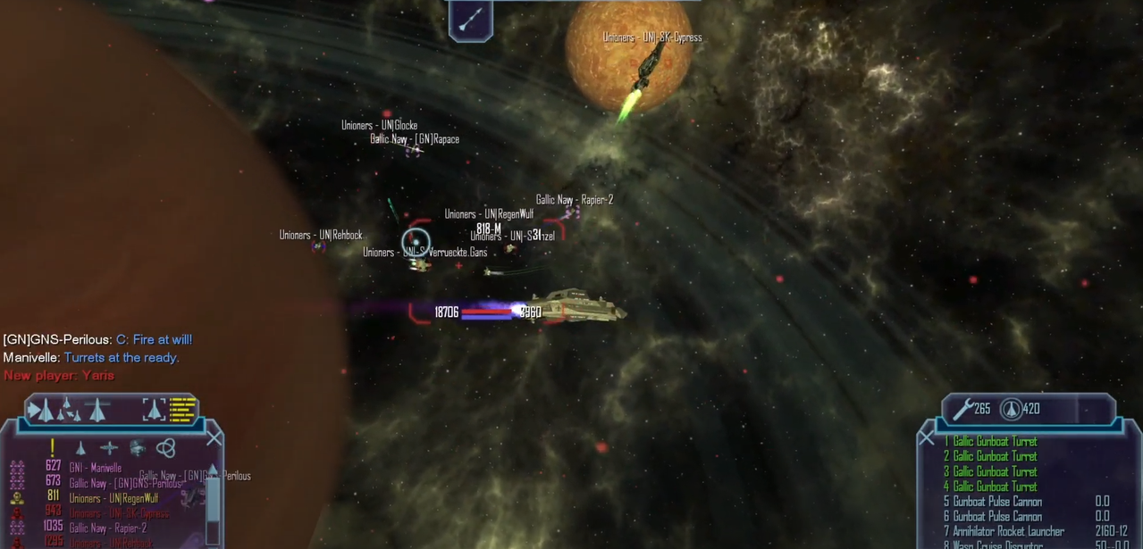 ![]() · Sender: Commandant Gabriel Alarie · Report Subject: Zurich patrol Bonjour! This is Gabriel Alarie from the Tourriers in the Zurich system. Well today started just like any other day reading mission reports from our naval ships in the system. One of the report's mentioned some unknown energy signals in the F-3/4 sector! Dont know why they did not set up some waypoint there to see what it was. I did take my ship there to take a peek, maybe i get lucky... Heh long range radars found nothing! After a hour we did return to Oerlikon Observatory! Just when we start up the mooring procedure some emergency signal came in from GMS ships, they came under attack by Unioner's! We did break off from the station and rush to the location the signal came from! Damn nothing but molten parts of ships! Our scanners did pick up the trace of the attackers so we did follow! On the way we did meet one of our own Naval vessel the GN-Hexatron Damn it was such a surprise to see on of the great Redemption's in active service. I did ask the captain of the Hexatron to join us to hunt down the Unioner intruders. We did found them in sector c-4, i did boost my ships engines to the melting point to get the hostile ships to break formation so that the Hexatron can make short work of them! It was a beautiful sight when the Battleship did open fire on them. On the radio we did hear voices of the lead ship ordering retreat with a voice of fear and terror! After the battle my ship returned to Oerlikon Observatory for fuel so that we can return to Rambouillet Shipyard. FIN DE TRANSMISSION