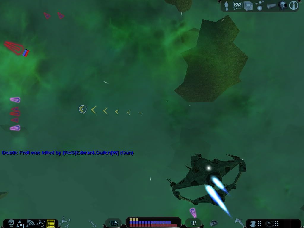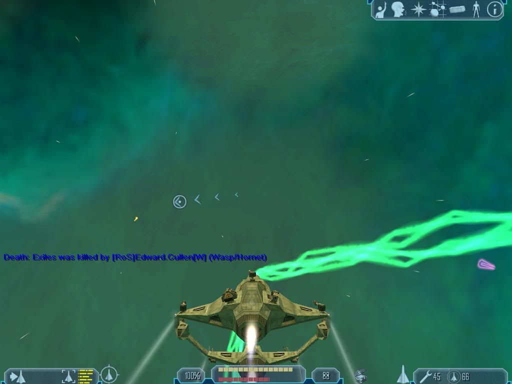 So. i payed a visit to Omicron Minor. But i found somthing i did not entirly expect here. Worst of all the ships commander kept calling me "ros" which was quite annoying. Anyway he was quite confused since he seemed to think The order and the corsairs were still allies...which they are not. So after a while he began to shoot me and i started dodging. then ships from The order turned up and i think were a bit confused about who to attack shown here. Eventually they attacked us both but the corsair was more interested in shooting me, still under the delusion that The order were his allies, despite the fact they were shooting him. After drawing intense fire from a Corsair battleship and an order fighter, my ship was destroyed, but im alive, i may be in hospital but im alive.