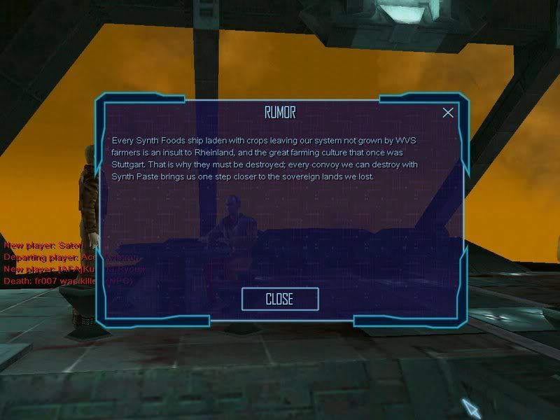 Quote:The LWB, or Landwirtrechtbewegung (farmers' rights movement), is believed to be engaged in attacks on Synth Foods operations and sympathetic government officials in retaliation for Rheinland concessions to the Liberty Food conglomerate. This faction is a faithful ally of the Hessians, therefore considered hostile by the Corsairs. However, the LWB attempts not to interfere into the war between Corsairs and Outcasts and stay neutral towards groups that joined either alliance.