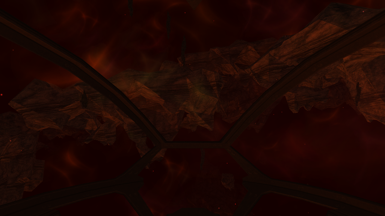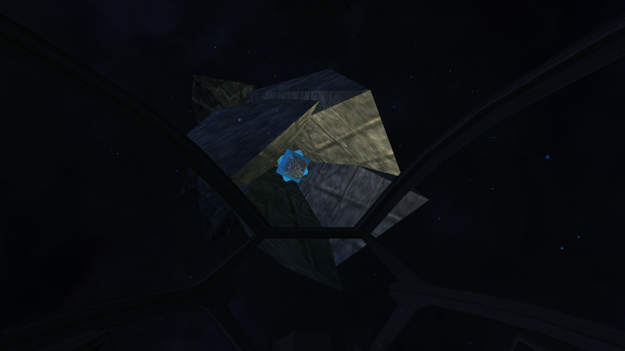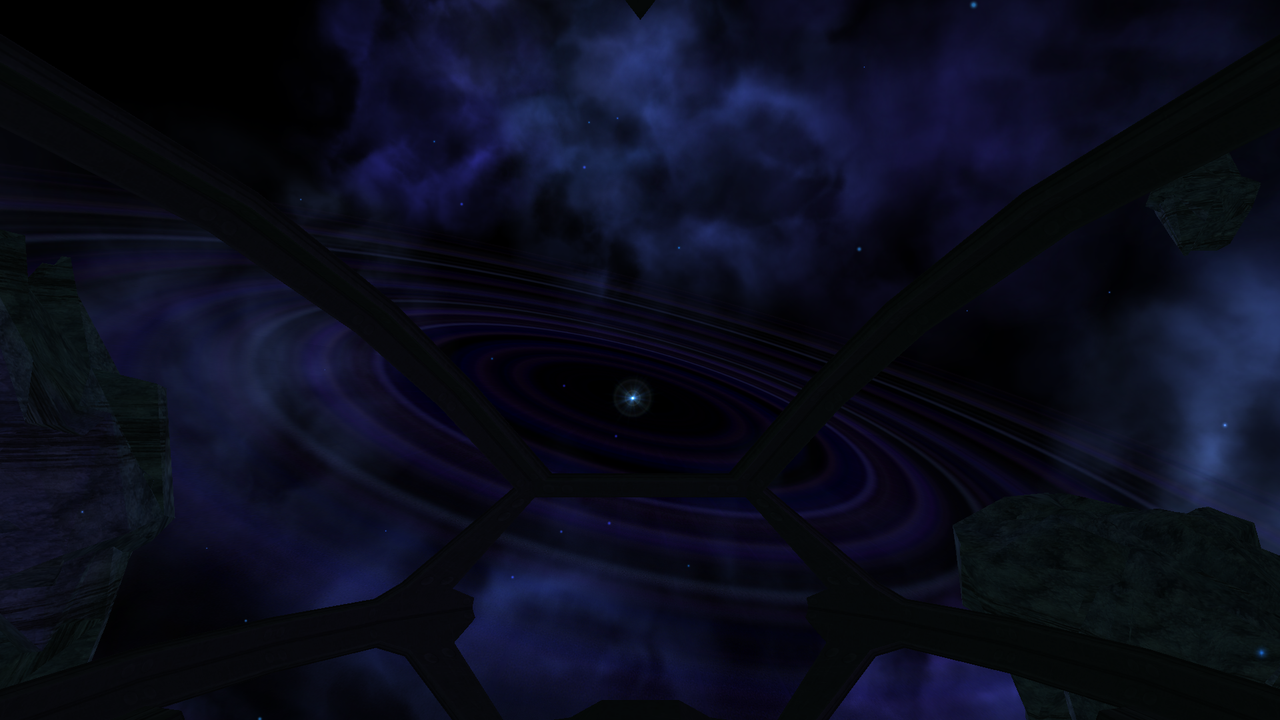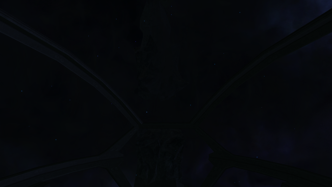 Following place was different. Instead of red nebula there was clouds of leftover dark matter, with an unidentified object at the center. As we proceeded further, dark matter clouds were becoming more dense, yet not unstable or charged enough to pose any danger. The final destination was a broken alien structure, similar to Earhart's pillars.