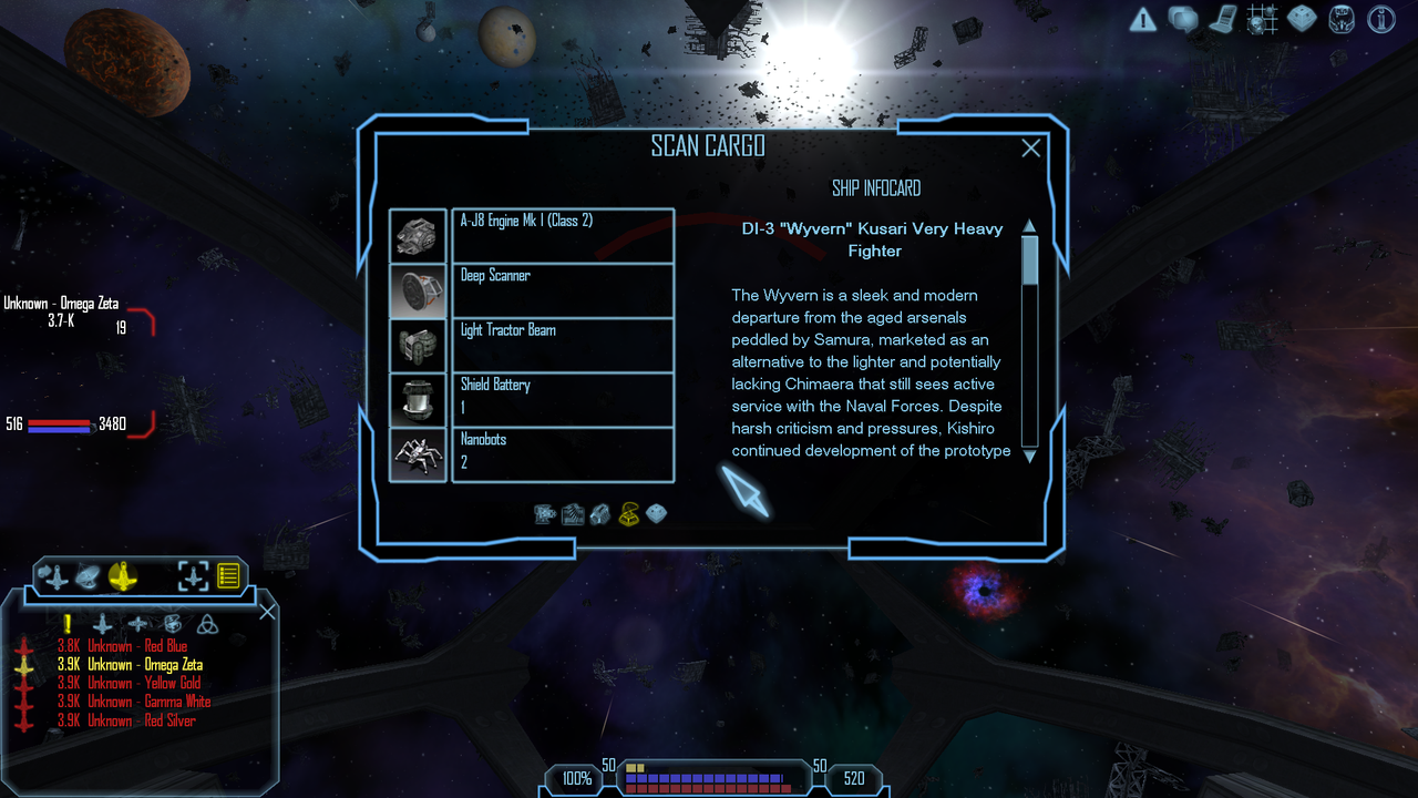 The system itself is covered in a nebula of some sort, dramatically slowing down the movements, also containing large crystallic formations. Our way through it was risky, as the space around had highly radiated pockets, posing danger similar to Kepler's storms. The path was found, the navigational data is recorded and saved. We found another jumphole, leading to the unknown system beyond the 4th Uncharted one.