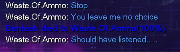 So next time when you smart one will answer, then look into mirror, think again what game are you playing and in what server , we don't need PvP whores here, that's the reason why that server is dying. We don't need NEW factions and ID-s here with unlimited Zoi and rights to shot everyone in everywhere.