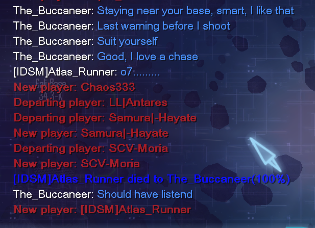 However, more than a year ago, I'd like to say it was around March of 2024, I did have an enlightening conversation with an indie nomad cruiser. I'm greatly paraphrasing here because it would take more hours digging through DSAce than I already put in and I only vaguely remember it, but the short version is that he was a silent powertrader who got killed for silently running, and took it upon himself to instakill traders without demands so as to "force admins to fix the shitty alien IDs so they can't troll honest workers anymore".