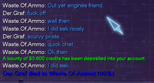 Oh, and let's say that you actually do find a trader as a pirate. The same exact thing happens as it does now. They noRP engage, run away, and then hurl OORP insults at you as they fly away or after they die. So what did you accomplish with this change?