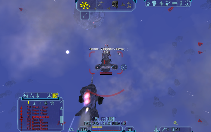 We had spotted these two attempting to pirate a trader at the California side of the New York jumpgate, while we were on an escort mission to Pittsburg. They ran as we showed, so we continued on to our destination. However, once our package had been delivered, we ran into them again, this time near Fort Bush.