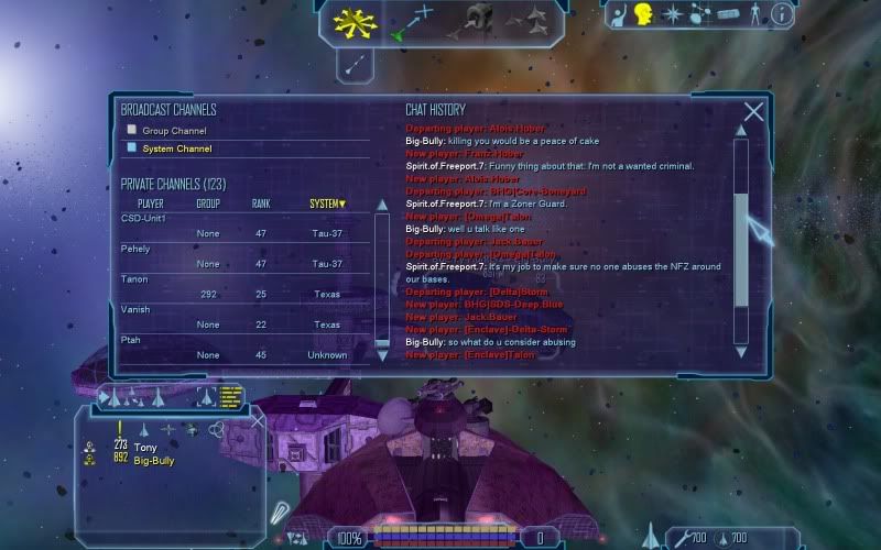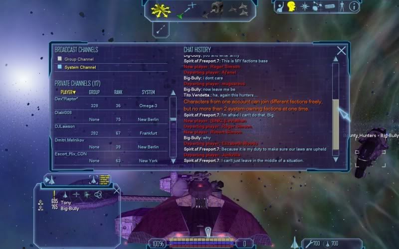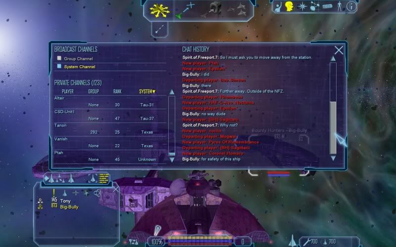 Unfortunatly, our new Guncam jiggled loose during combat, so I do not have visual evidence of Patos's destruction, but it did take place.... right across the bow of a TAZ member. Sorry about that Dulcinea, hope you didn't get hit by shrapnel or anything.