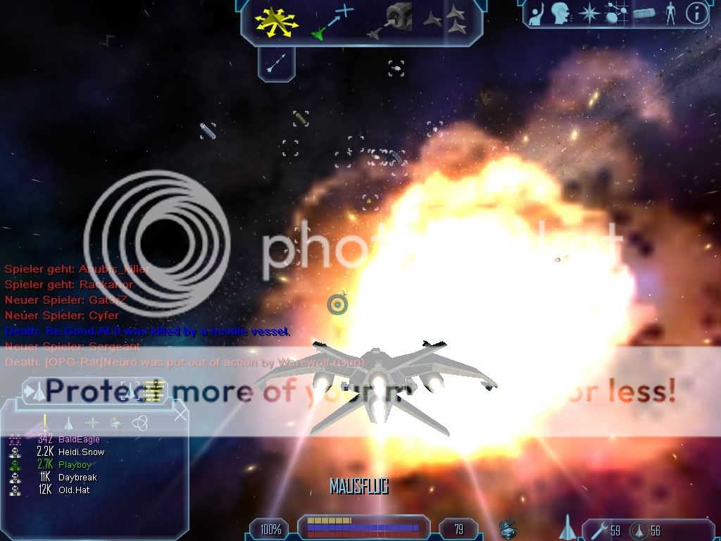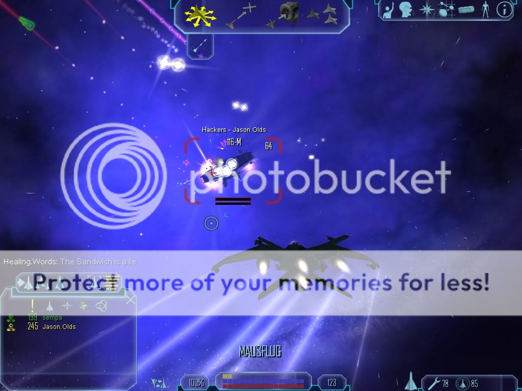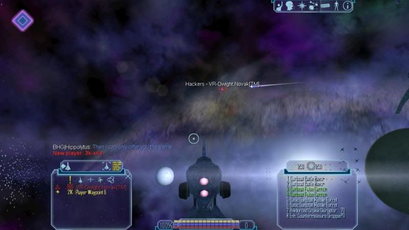 After a short while, a strange gentleman decided to join the battle against me. I was forced to put his vessel out of commission before resuming my efforts against the Raider. It took time, but I managed to draw the Broadsword into position for a final shot by my supernova cannon.