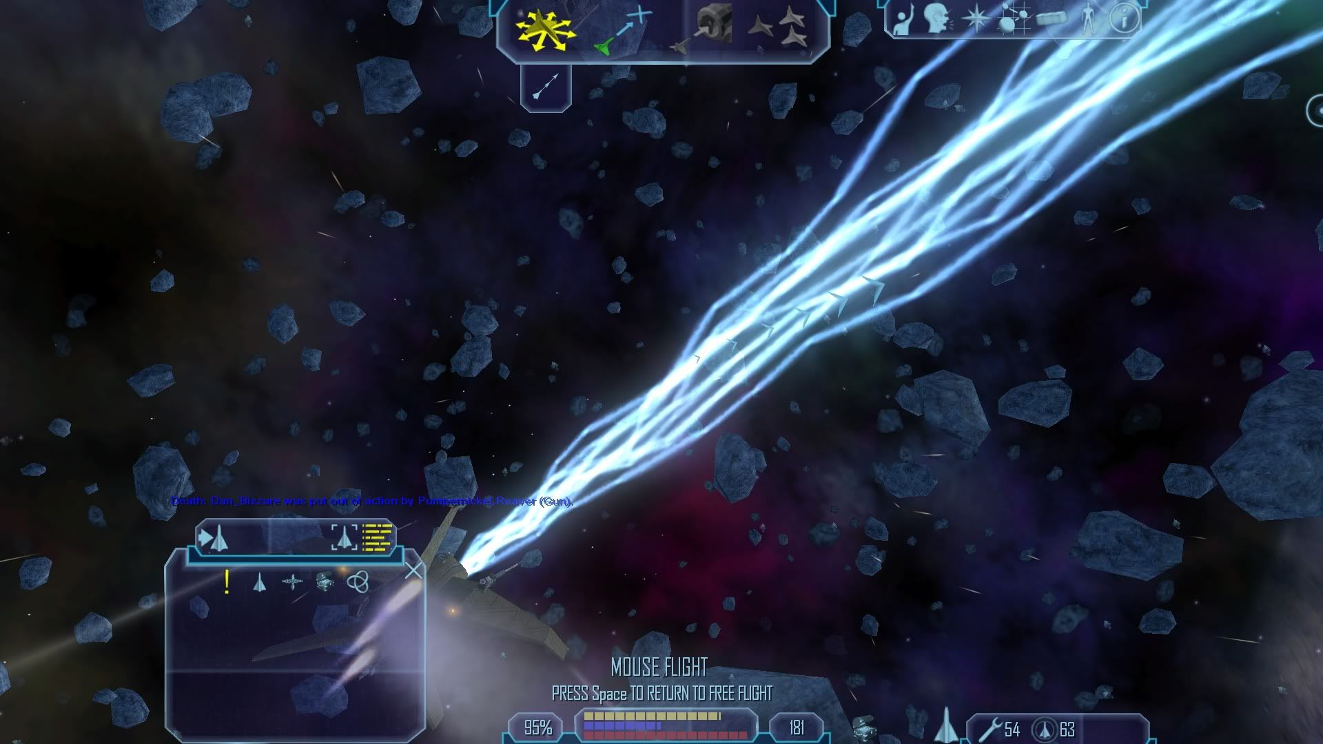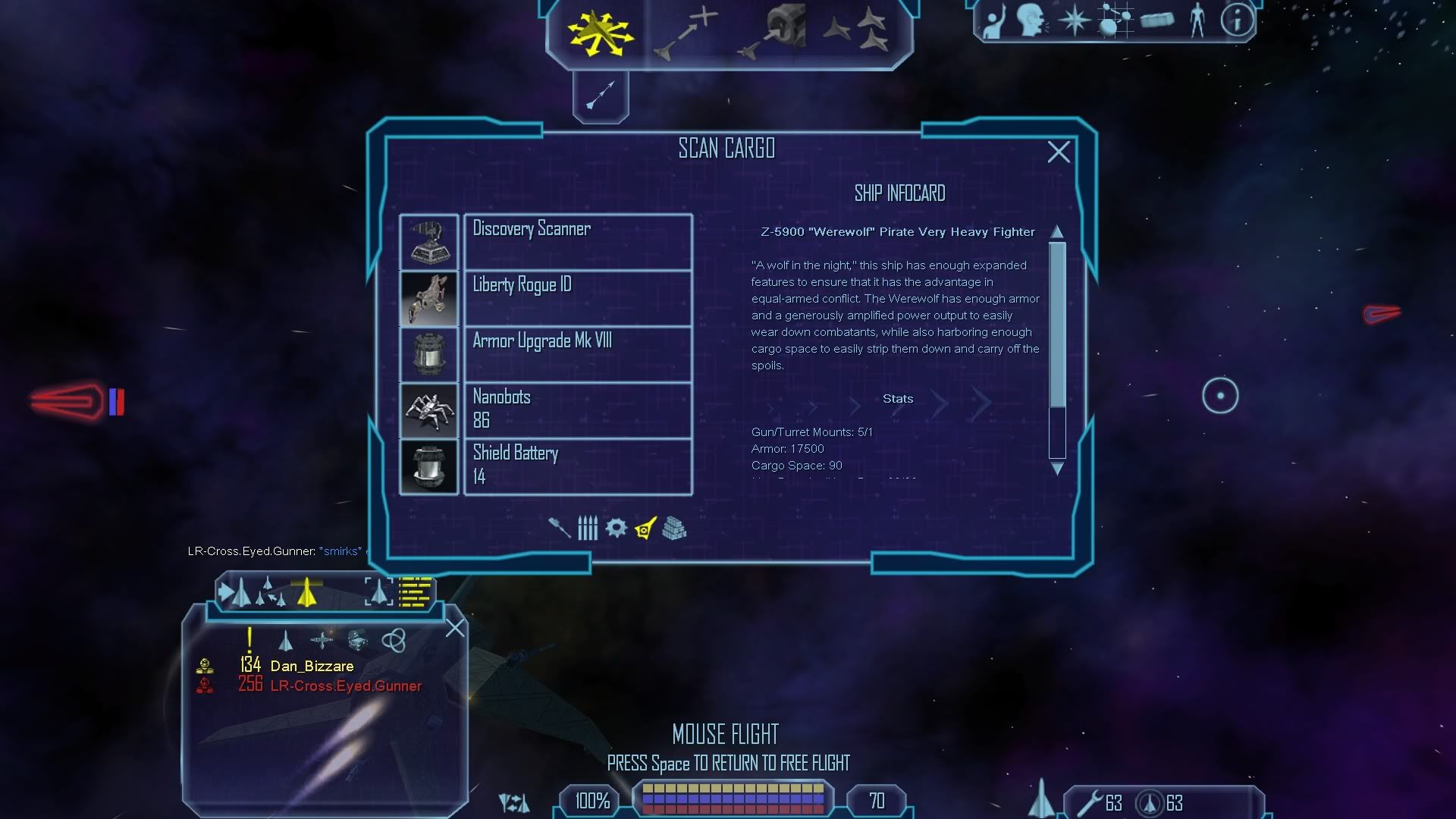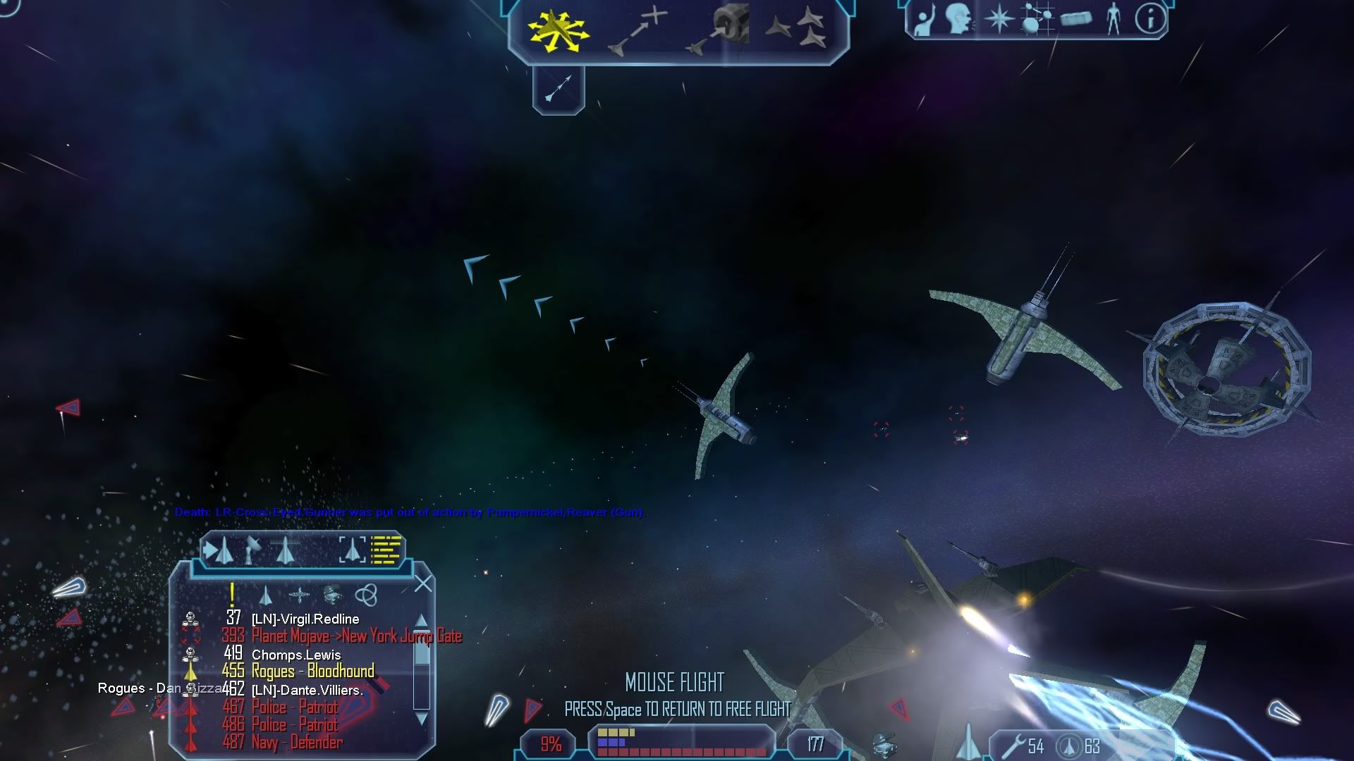 Circumstances: Mid way through our hunt, we came across a Freelancer controlled pirate ship Guybrush.Worley and a Border world Freelancer pilot, David.Taylor in a lane disruption formation, one on either side of the lane. They did disrupt us to their surprise. I asked them as nice as I could, really, to drop their Bounty hunters and the liberty pilots, they really weren'€™t in the mood too. Eventually the Freelancer Pirate transport got antsy and thought my gunship sitting around was a good target and started opening fire on me. Well that pretty much did it. A liberty fighter came into the picture and the scuffle ensued. Both the pirate ship and assisting pirate freelancer fighter were destroyed.