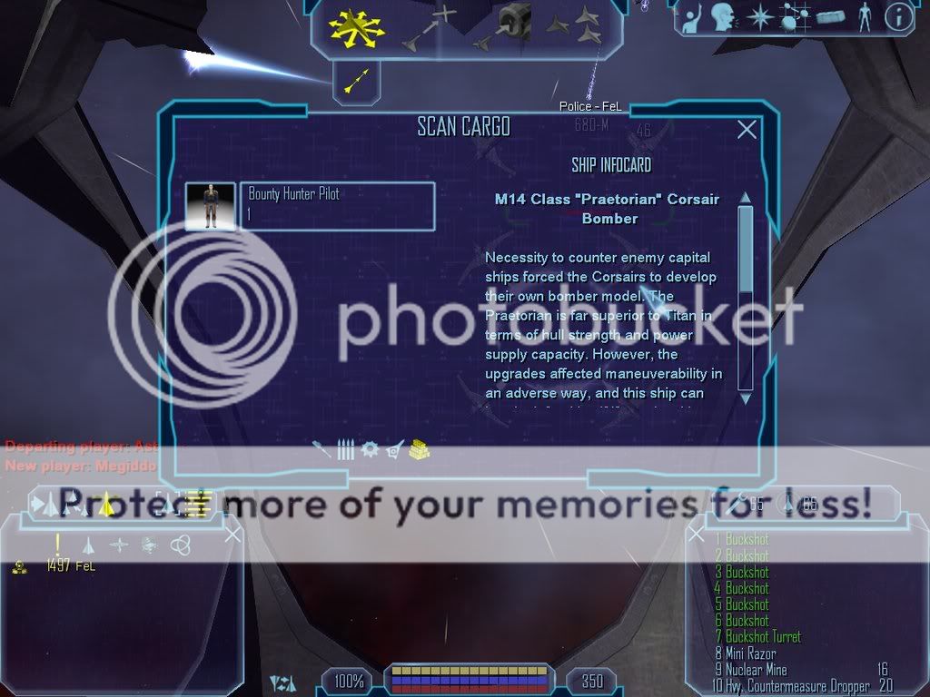 It was a Praetorian Bomber, yet my close range scanners showed him as friendly. Which is really odd because I have the BHG Guard IFF. Fel's IFF showed up as Police.