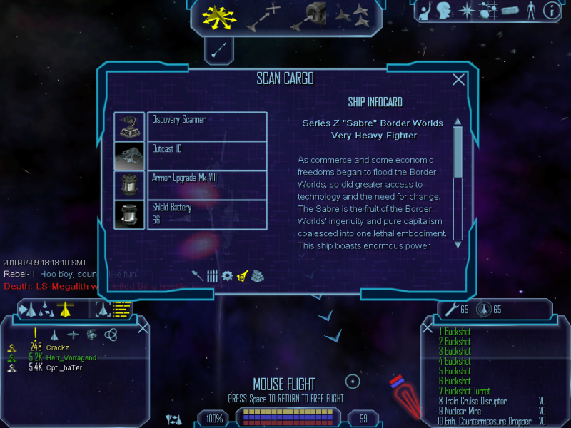 today i encountered a LPI vessel surrounded by three hostile vessels. To prevent from it's destruction i was forced to enter the fight immediately. Unfortunately due to that circumstance, i can't provide any closer scans of those vessels. I managed to shoot down Tommy Tsui, must be some merc or freelancer in a Sabre.