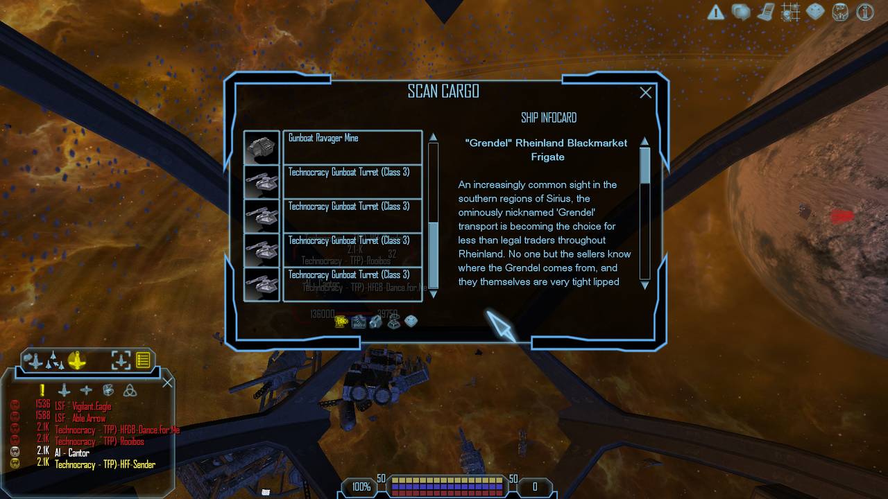 During our mission we have met zoner captain on ship which callsign was "OSI-Greenwich". Recieve order from agent "Blackjack" make a cargo check I didn't find anything special, just a transport with full cargo hold of Iridium, and we let him pass through jump hole.