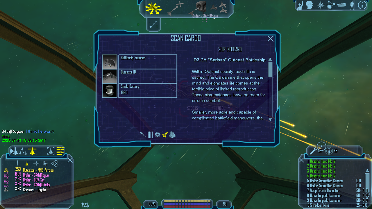 [07.07.2025 12:25:47] 34th|Constanta: Understood, copy. Preparing weapon system, scanners and shields to be used in moment.
