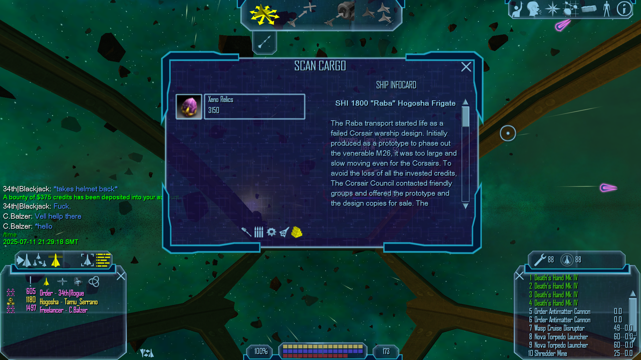 [07.07.2025 12:30:09] 34th|Blackjack: I already scanned them both, Terabit.Leza and Consealed and found two ships full of Xeno relics.