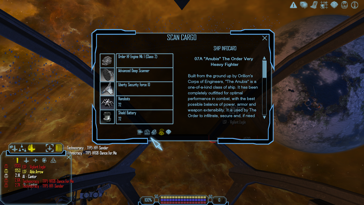 Xeno Relics were found in the hold of these two ships, a total of 2600 units, at the request of agent "Blackjack" the violators dropped the cargo and additionally destroyed it themselves. Later we were joined by agent "Eclipse Vanguard" with the call sign "E\V/-OCV-Baal" and agent with callsign "Anhuret" with their help the violators were interrogated and escorted out of Omicron Pi. The order came from the planet Pygar, they do not know the customer personally. After the intruders left the systems, Agent "Blackjack" and I returned to Dabadoru Station.