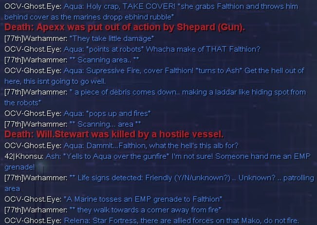 I was unsure whether to let him join because of his mental state (he referred to the BHG as snotwads, cats and crims gone good, then proceeded to utter "Murphy, Murphy"). However when our conversation was interrupted by a Battle Razor which just about took me life, he managed to keep my ship from falling apart long enough for me to reach the Isis safely. With the opposing BHG capital destroyed we continued to discuss his position.