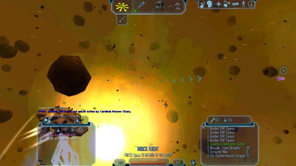 After a short but intense fight, we just so happened to fly inty each others mines...I really have to get some more flight hours on that Light Fighter I figure...
