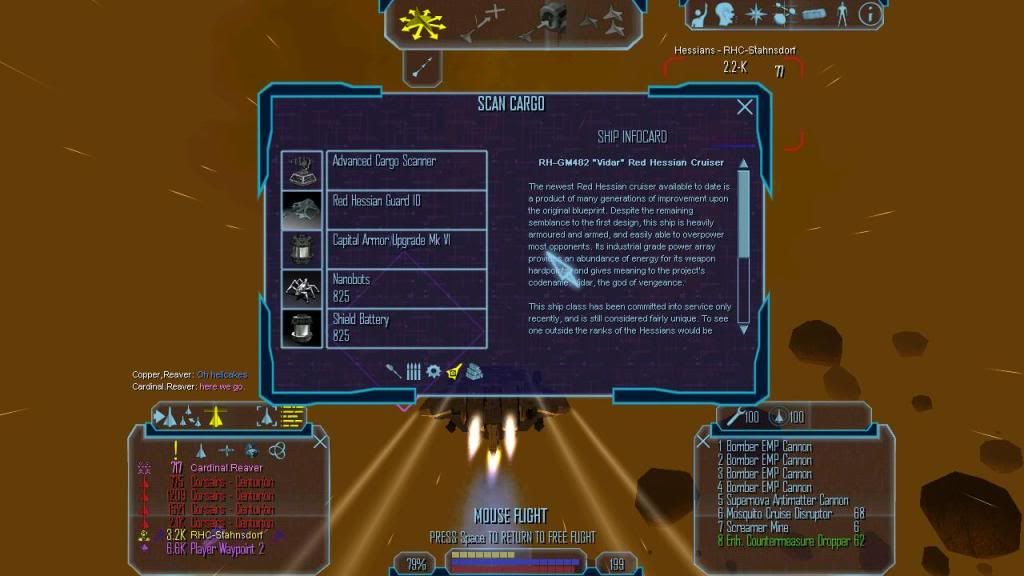 Hello, this is Indigo from the Reaver Mercenary Company. I've been annihilating hessian gunboats that have been cropping up in various places, plus one bomber.