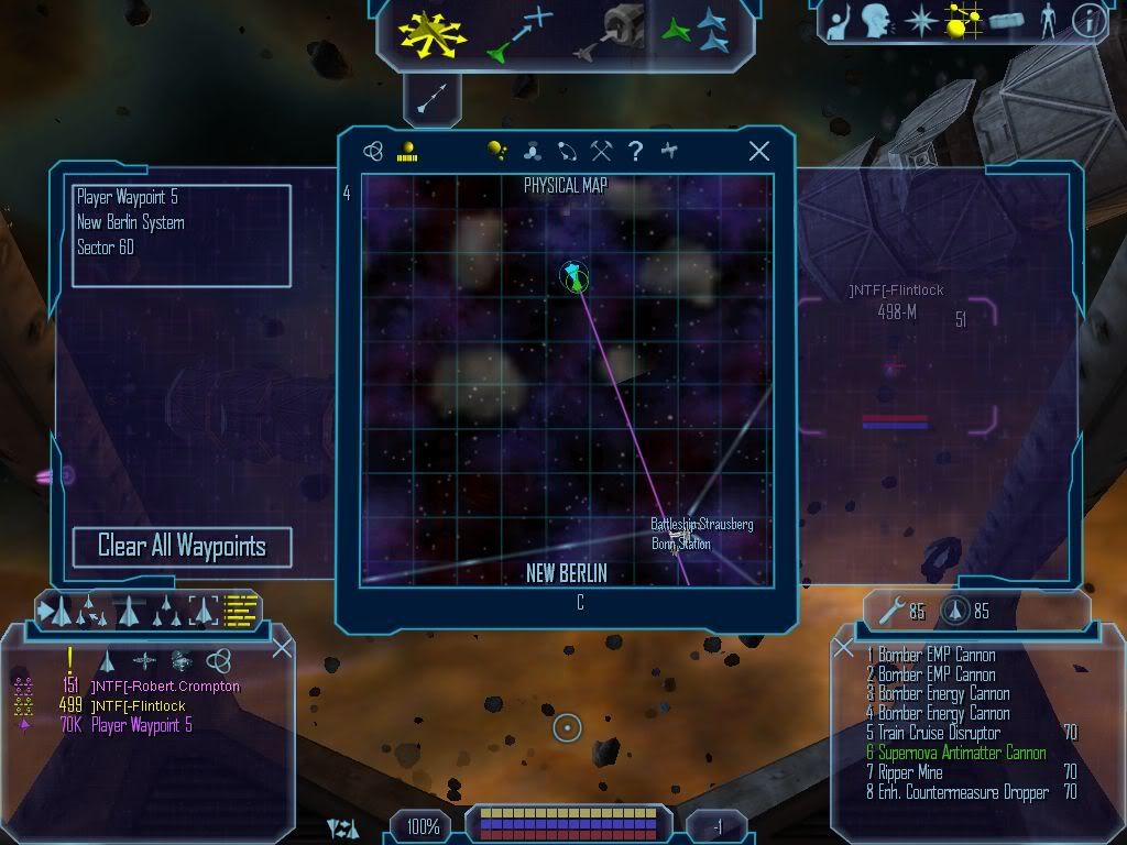 After that was over, Bretonia was quiet, so we continued our patrol through the Omegas and into Rheinland. Stopping over at the LWB's Biergarten, we continued into New Berlin. On our route through the system we found a pair of modules from what I think may have been an old Kruger mining station at one point. They may still be salvageable; the location has been marked at this point on the map.