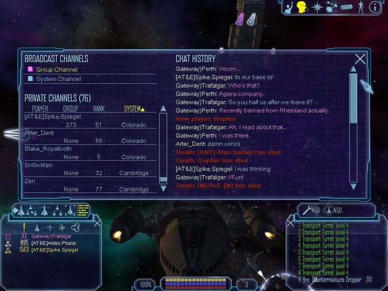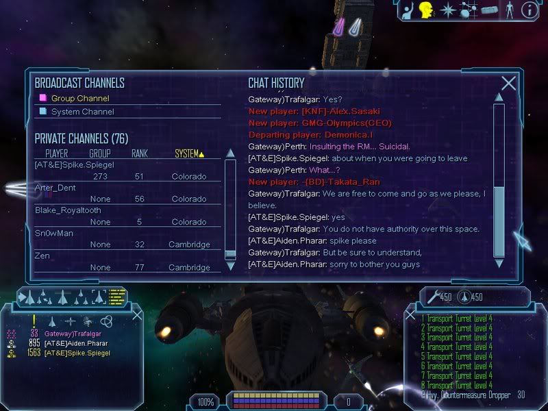 Later, the boss and I decided to run a Boron/Berl run. And we encountered a pair of AT&E (now found it's Agiera Tech and Engineering or somesuch). Once we had landed and we were about to leave, we were accosted by one of the fellows there. Demanding to know our business and when we were leaving?! Not a nice thing to say to the CEO of Gateway! I think an official response is in order, to reply to this behaviour. Some extra digging seems that this Spike feller is actually their head of security...