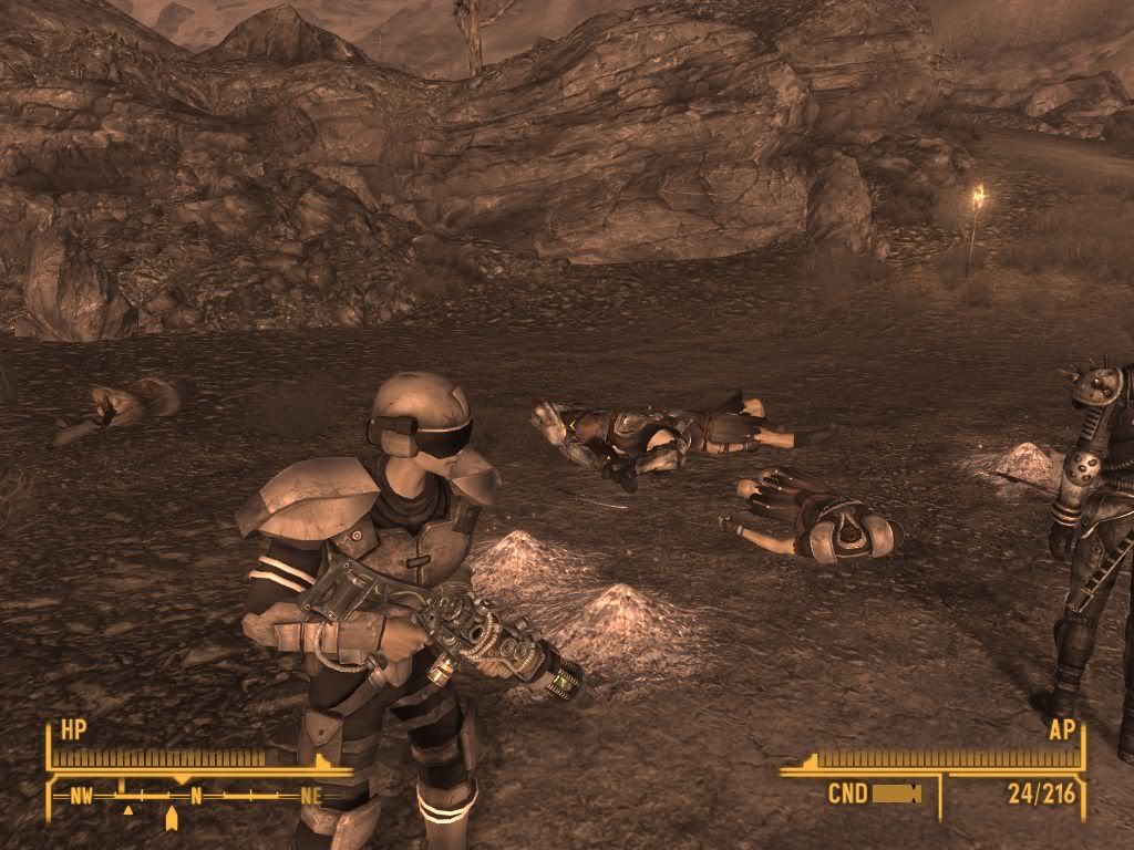 It's because there is only one path through those mountains that leads to the Great Khans base. My Silenced Sniper Rifle was the perfect tool for... dealing with them.