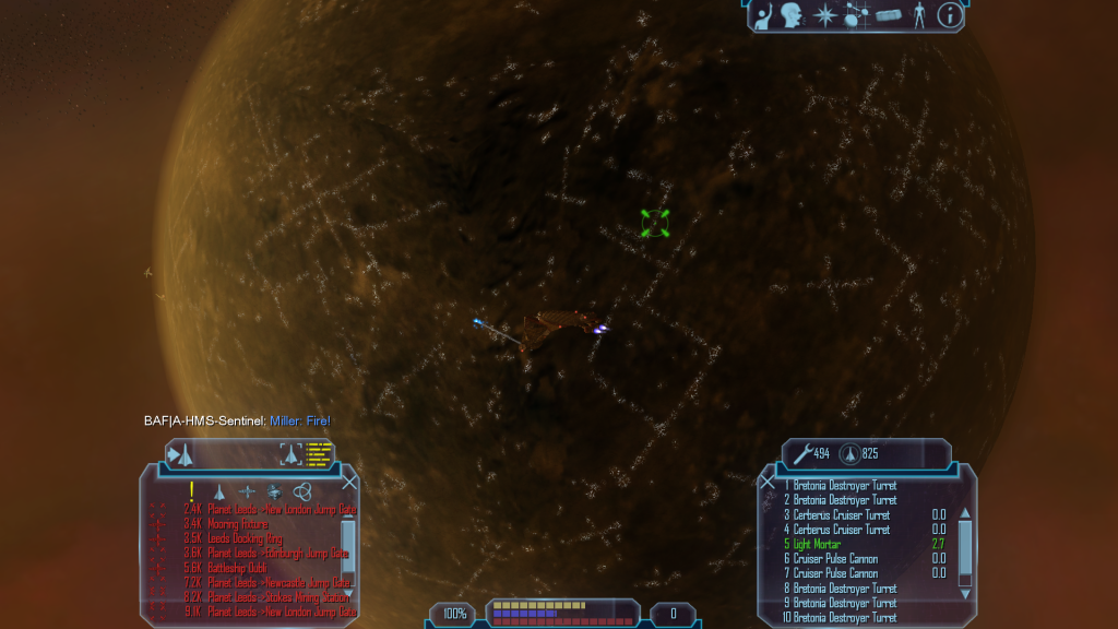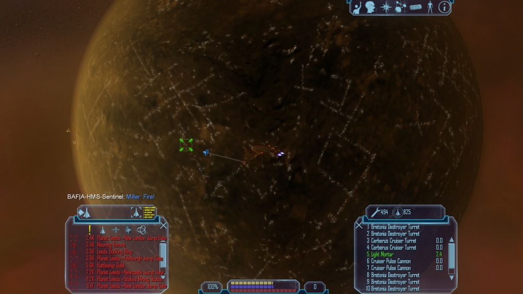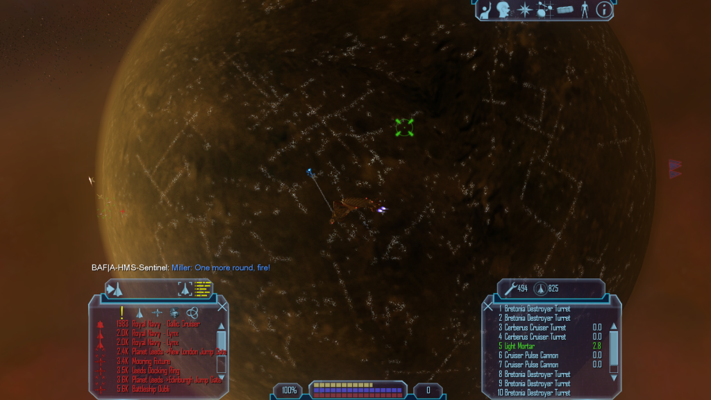 Miller sits up in his chair and flicks on the camera. "Good day! We just sent three presents down to the Gauls, seems they all hit from what we saw from up here." He falls off of his chair as Royal Navy bombers land several antimatter hits on the 'Sentinel'. "Blimey, they don't give up eh? Anyway if you need any more support give us a call." He pulls himself onto his chair again whilst smiling nervously as several more thuds are heard from the bombers.