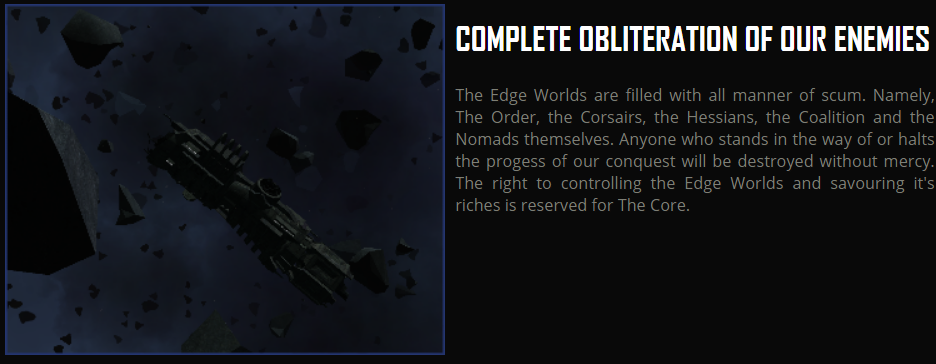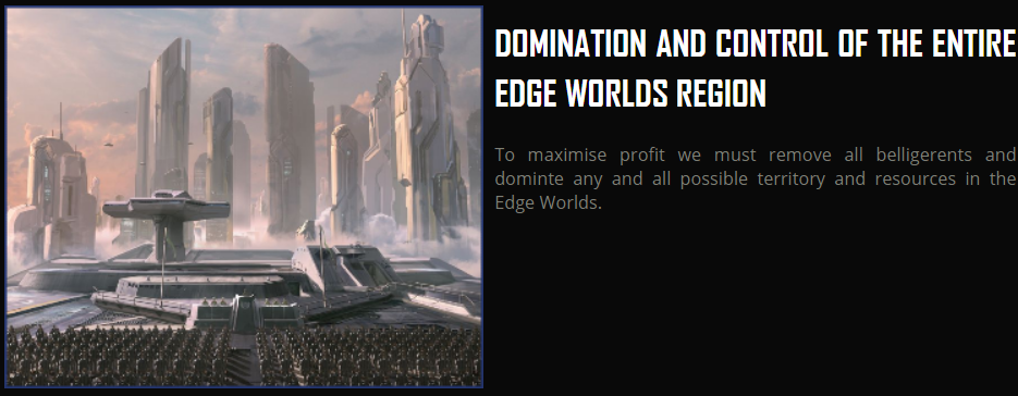 The Core mission has always have been the domination and the control over the entire Edge Worlds region. We have had some setbacks in the Omegas and the Core Force will focus on the Omicrons. And I believe so should the rest of the Core going forward. This will allow us to focus with much greater power and resources on smaller areas temporarily, and this includes the control of, you guessed it, Omicron-Nu.