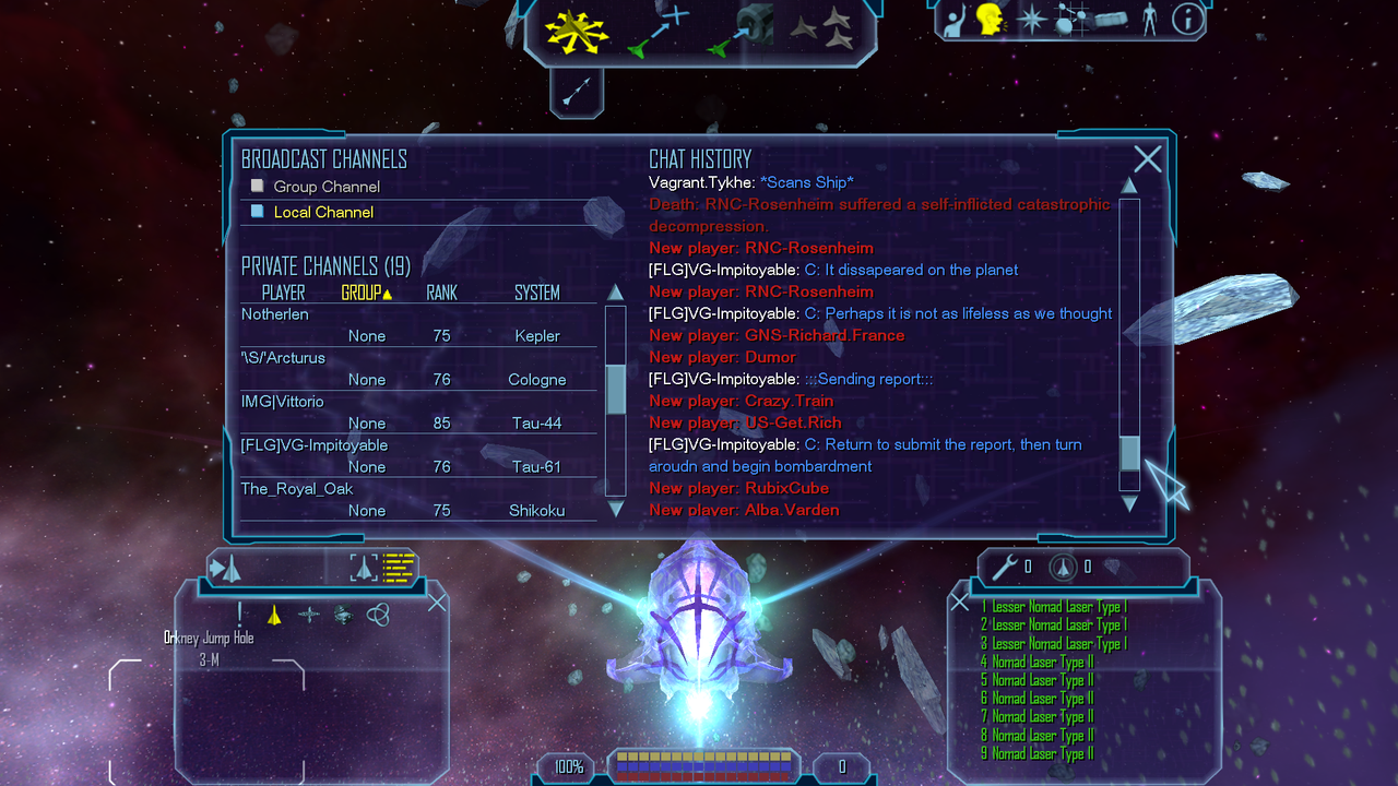 Gifts shared and rewards earned. Vagrant Tykhe explores the deep depths of space offering 'gift's to those that are friendly. In the first human contact, damage was sustained to it's jump drive causing malfunctions. Several erratic jumps and a friendly Nomad escort returned it to known space. A second encounter and a scorned gift led it to a greater distrust and increased weariness towards human encounters.