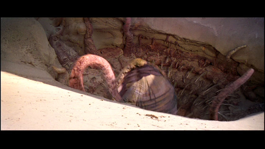 Log: "Pheeeew, dis was CLOSE! Dere ah was, sittin' on a rock, some two hundred feet from da oasis edge, all o' da sudden da sand starts shiftin'! Ah took runnin', leapt on da speeder and charged off. Turned around on a safe distance, an' saw a huge pothole in da ground. Came closah' an' took a snapshot, but 'ad 'ta dash real quick, dat ...dat... ting almost got me wit' its tentacle. Ah'm guessin' it'd be a quick an' nasty end ta' yours truly, heh heh. Back ta' da Breath, an note to self: Park it AWAY from sand."